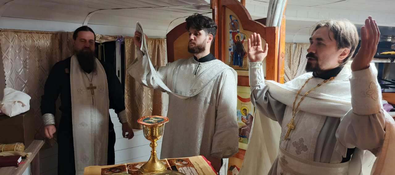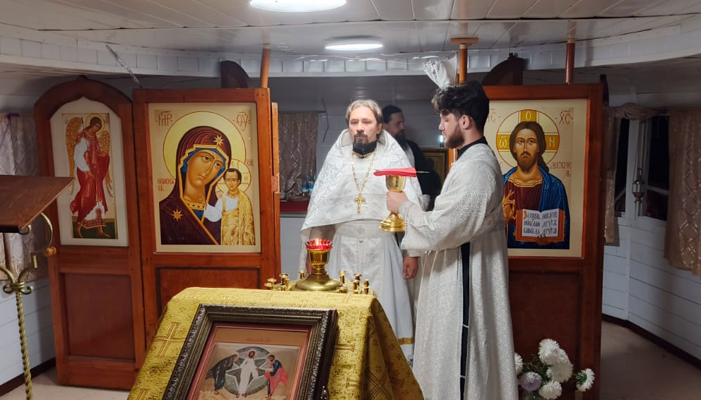 19 августа в праздник Преображения Господня на корабле «Апостол Андрей Первозванный» была совершена ночная служба - утреня и божественная литургия, по окончании которой по традиции было совершено освящение винограда и фруктов. В праздничном богослужении участвовали и врачи, многие из которых воцерковленные верующие православные христиане, и члены команды корабля. В праздничный день миссионеры прибыли в село Устюжанино. Там, после огласительной беседы местные жители приняли крещение и причастие. Освящались три объекта: ФАП, ДК и жилой дом. Помимо этого, совершены молебен и панихида.