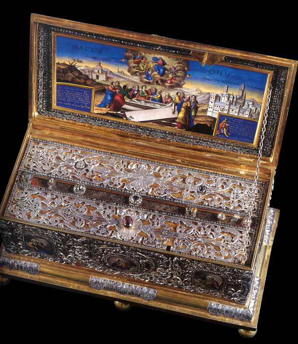 [2] Данные агиографических источников весьма туманны и противоречивы. Здесь мы приводим версию «Константинопольского Синаксаря», подтверждаемую «Императорским Минологием» (XI в.). Однако в том же тексте, как и в «Минологии Василия II», далее говорится, что перенесение святыни произошло при Аркадии, сыне Феодосия (395–408). С другой стороны, известно, что строительство Халкопратийской церкви было начато Пульхерией, а закончено только при Льве I. Возможно, церковь была разрушена землетрясением и затем восстановлена Юстином II (565–578), который сделал большой вклад в этот храм и построил часовню для честного Пояса. 12 апреля в «Синаксаре» поминается другое перенесение честного Пояса – из Зелы в Константинополь, но в тексте оно отнесено к IX в. Эта дата, безусловно, ошибочна, поскольку сохранились церковные песнопения на этот праздник, сочиненные в VII в. св. Максимом Исповедником, а также гомилия св. Германа Константинопольского, относящаяся к следующему столетию. Некоторые историки полагают, что сначала существовал только один праздник в честь честного Пояса и Ризы, отмечавшийся во Влахернах, и что нынешний праздник появился только в IX в. Как бы то ни было, крестный ход, который совершался каждую пятницу от Влахерн в Халкопратию, указывает на связь между этими двумя величайшими Богородичными святынями Константинополя.