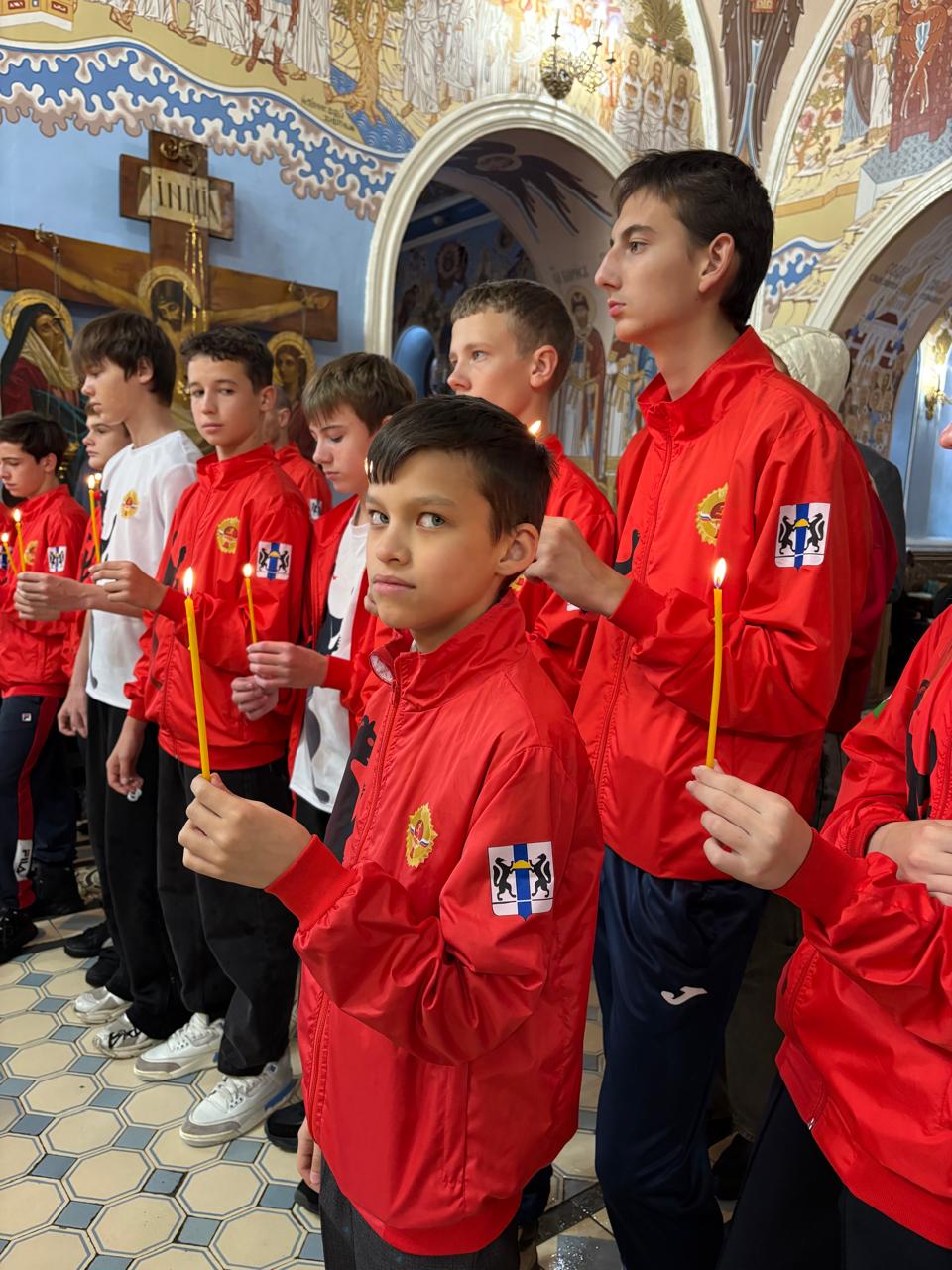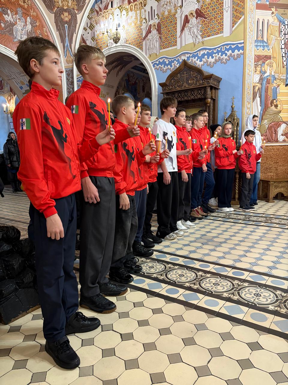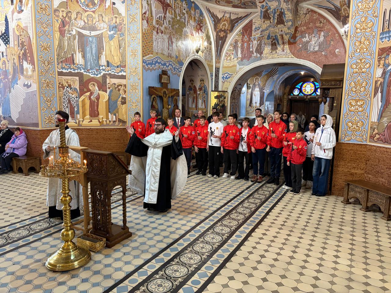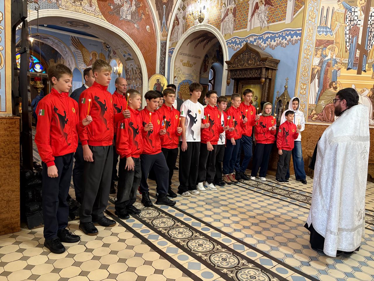 После встречи в Правительстве ребята вместе с наставниками переместились в собор во имя святого благоверного князя Александра Невского, где иерей Борис Левитан совершил благодарственный молебен. Затем состоялось чаепитие, на котором в неформальной обстановке спортсмены обсудили итоги соревнований и пообщались со священником.