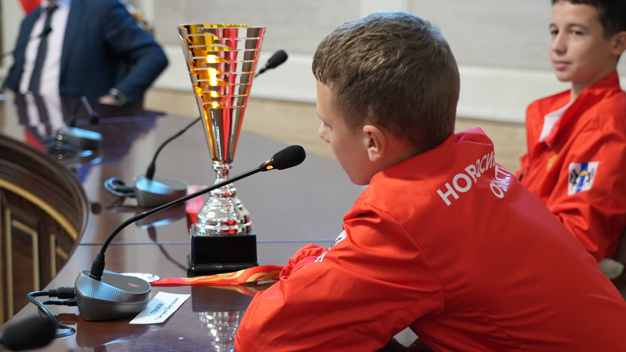 Обращаясь к участникам встречи, министр физической культуры и спорта Сергей Ахапов поздравил ребят с достойным выступлением.