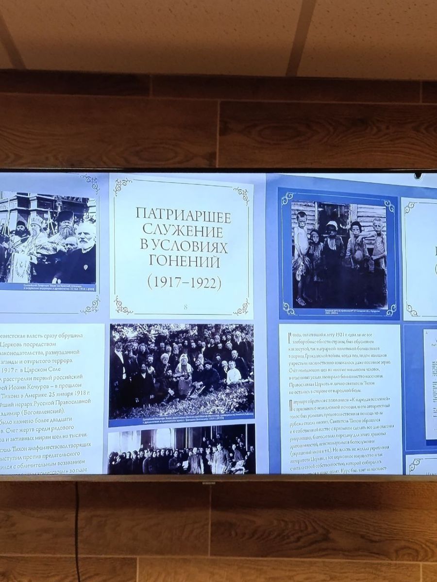 Кроме того, преподаватели, воспитанники воскресной школы и их родители посетили уникальную мультимедийную выставку «Голгофа Патриарха Тихона» в Историческом парке «Россия — Моя История». С помощью современных технологий — интерактивных экранов, видеомэппинга, компьютерной графики и уникальных архивных материалов – выставка рассказывает о жизненном пути и духовном подвиге Патриарха Тихона. Выставка проходит по благословению Святейшего Патриарха Московского и всея Руси.
