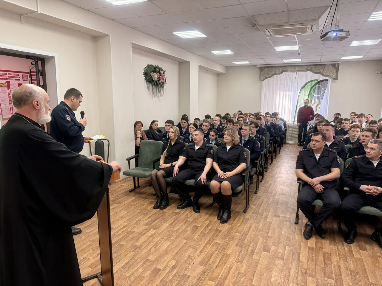 Темой лекции, слушателями которой были учащиеся и преподаватели лицея, а также сотрудники УТ МВД по СФО, были деструктивные образования, как угроза личности, семье, обществу и государству. Отец Александр рассказал, что противопоставить деструктивным образованиям, нередко построенным на экстремистской идеологии, мы можем только патриотизм, как нравственный принцип, социальное чувство и идеологию, основанную на любви к родине, преданности своему народу, гордости за его культуру, достижения, а также готовности защищать интересы страны. Патриотизм — это осознанная привязанность к отечеству, которая включает сохранение и следование традиционным духовно-нравственным ценностям, бережное отношение к традициям, языку и готовность к жертвам ради его процветания. Протоиерей Александр сделал акцент на то, что несмотря на некоторые относительно внешние сходства, экстремизм является фундаментальной противоположностью патриотизма.