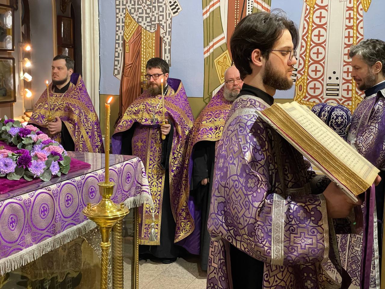 Публикуем краткий фоторепортаж с всенощного бдения с выносом Креста в центр храма в Александро-Невском соборе.