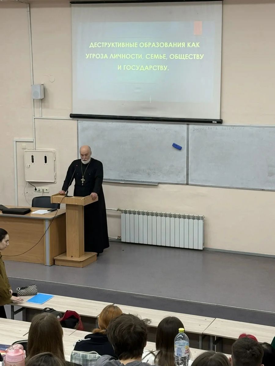 Встречи были посвящены теме «Деструктивные организации, как угроза личности, семье, обществу и государству». Идёт война за сознание наших соотечественников, особенно молодёжи. Отец Александр рассказал, что дестабилизирующие организации и субкультуры можно разделить на четыре группы по степени угроз. Угрозы первой степени могут лишить вас только времени и денег, а четвертой вынуждают вас не только потратить все деньги и время на них, но и убивать людей.
