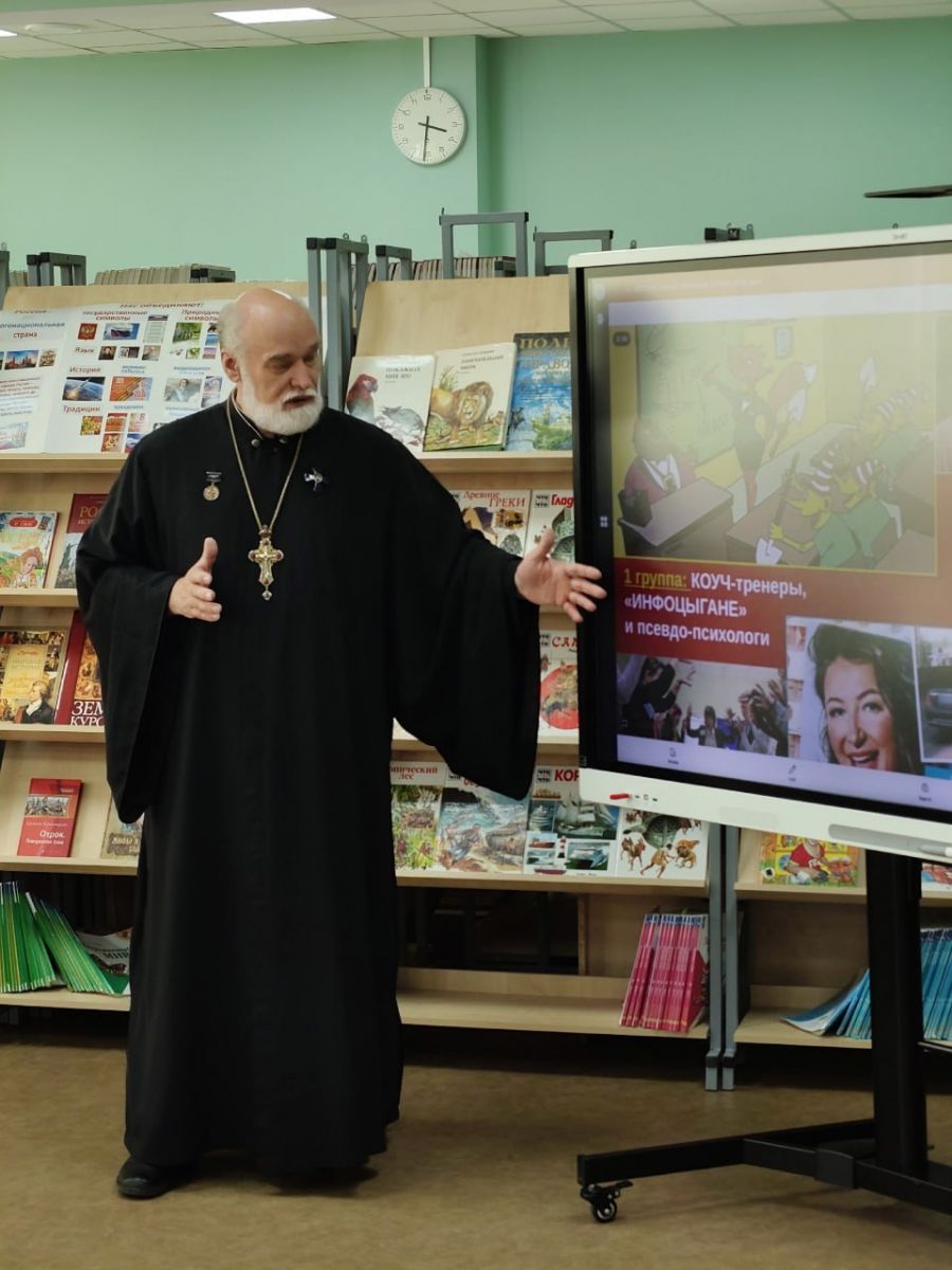 Отец Александр выступил с лекцией «Деструктивные образования как угроза личности, семье, обществу и государству», в рамках которой представил современные технологии проникновения сект в образовательные заведения под благими предлогами и целями. Также отец Александр рассказал о профилактике деструктивных явлений: экстремизма, терроризма, суицидальных игр и сектантства. Особое внимание было уделено опасности неоязычества, которое искажает историческую правду и подменяет традиционные ценности. Было подчёркнуто, что подлинный подвиг и мужество — основа христианской жизни.