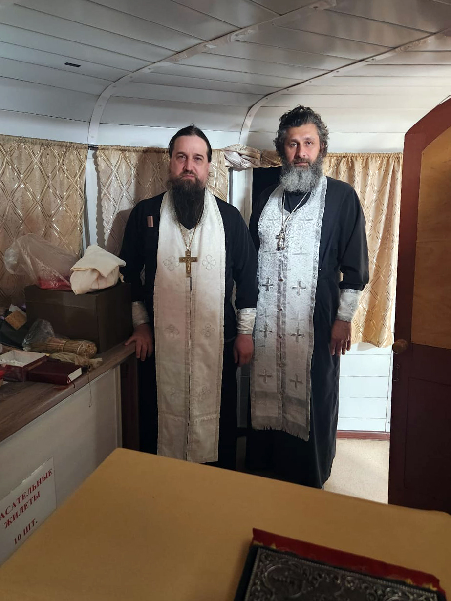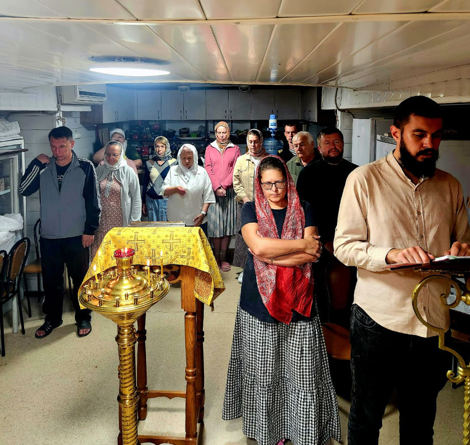 19 августа в праздник Преображения Господня на корабле «Апостол Андрей Первозванный» была совершена ночная служба - утреня и божественная литургия, по окончании которой по традиции было совершено освящение винограда и фруктов. В праздничном богослужении участвовали и врачи, многие из которых воцерковленные верующие православные христиане, и члены команды корабля. В праздничный день миссионеры прибыли в село Устюжанино. Там, после огласительной беседы местные жители приняли крещение и причастие. Освящались три объекта: ФАП, ДК и жилой дом. Помимо этого, совершены молебен и панихида.