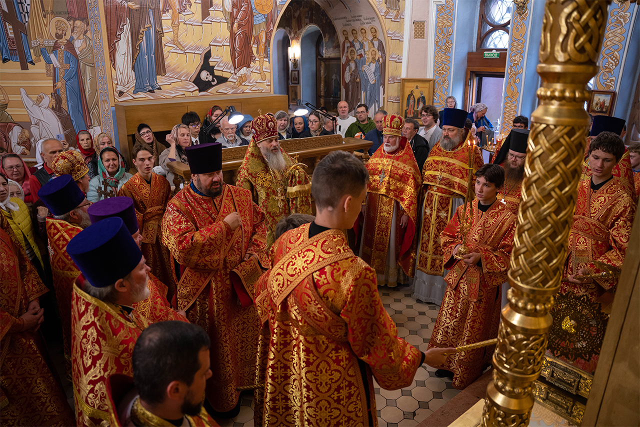 На сугубой ектении были вознесены особые прошения о Святой Руси. По совершении Божественной литургии митрополит Никодим обратился к священнослужителям и прихожанам Александро-Невского собора с архипастырским словом. Владыка отметил, что сегодняшний праздник посвящен перенесению мощей святого Александра Невского из Владимира в Санкт-Петербург, и напомнил, что благоверный князь является покровителем российского воинства и защитником земли Русской.