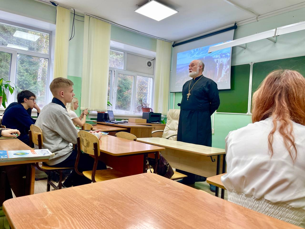 Беседа носила профилактический характер. Отец Александр рассказал старшеклассникам о современных угрозах - об экстремистских и террористических группах, о сектах, о деструктивных движениях и субкультурах, о том, как в них вовлекают, как происходит процесс вербовки, как это распознать и противостоять этому, развивая критическое мышление, о данной Богом каждому личной свободе и о важности выбора правильного пути в своей жизни.