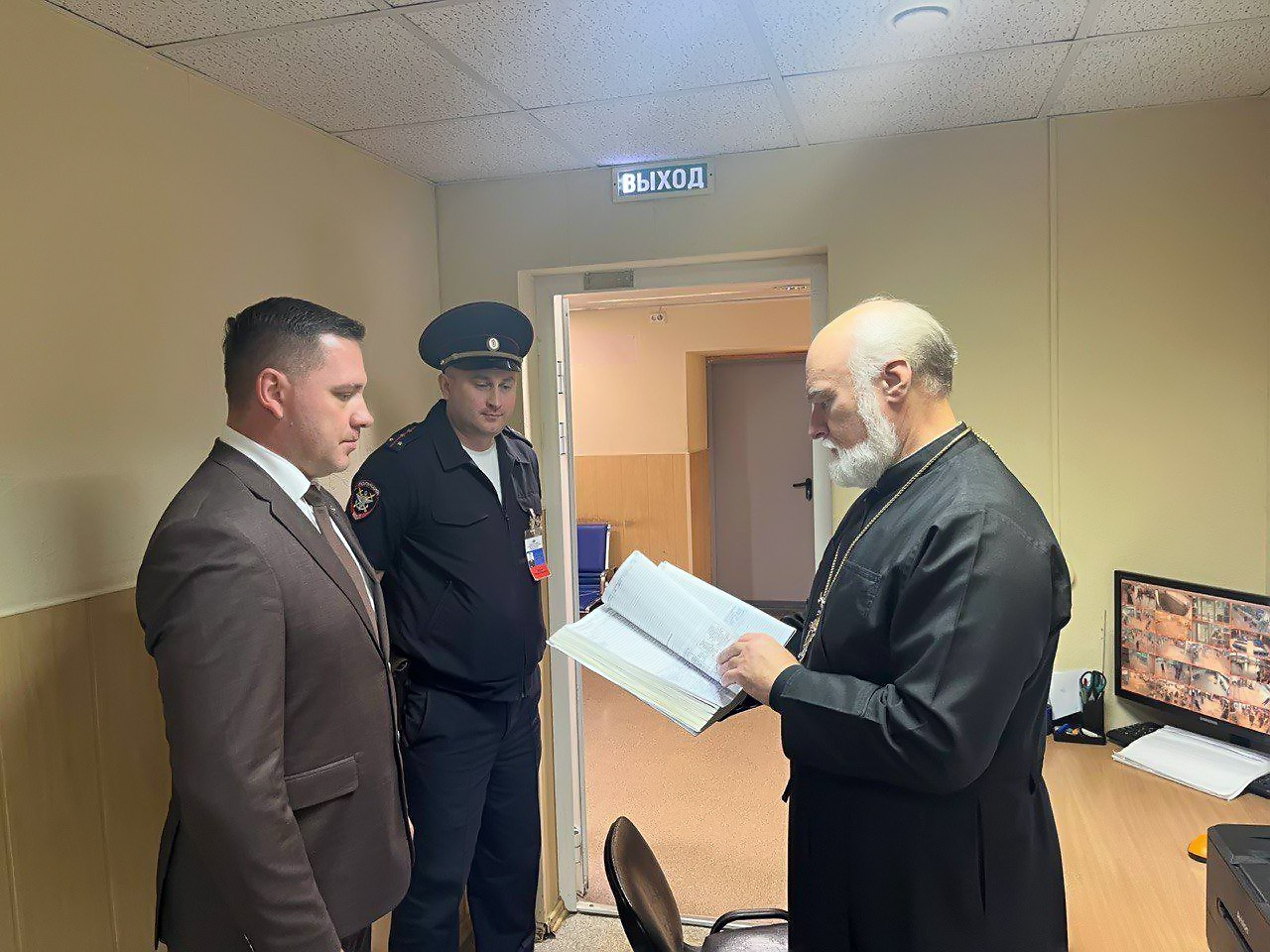 В дежурной части отец Александр побеседовал с оперативным дежурным, его помощником и отметил, что они владеют информацией об оперативной обстановке, проводимых профилактических мероприятиях, разыскиваемых лицах. Общественник отдельно подчеркнул опрятный внешний вид транспортных полицейских, их доброжелательное отношение к посетителям, доступность и оперативность работы отдела полиции.