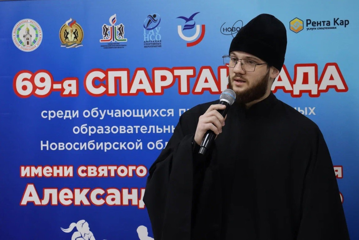 С приветственном словом к спортсменам обратился помощник руководителя Спортивного отдела Новосибирской епархии кандидат в мастер спорта по гиревому спорту, клирик Александро-Невского собора диакон Антоний Шамилов.