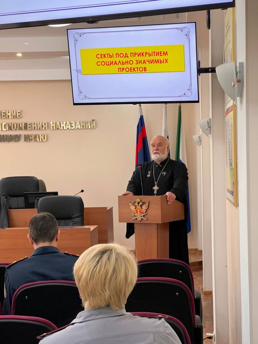 Первая лекция была проведена для сотрудников Управления УФСИН, вторая - для курсантов Дальневосточного юридического института МВД РФ. Тема лекций: «Секты под прикрытием социальных проектов и спортивных программ». Отец Александр рассказал о том, как секты ведут свою работу и вербовку в свои ряды под видом благотворительных, социальных или спортивных организаций, в то время, как истинными их целями являются власть и деньги. Причём эти интересы - общие для любых сект, экстремистских и террористических групп, не важно какого вероучения и идеологии они придерживаются - будь то псевдохристианские, неоиндуистские, неоязыческие, исламистские или просто нацистские организации. Эта идея была отражена отцом Александром в созданном им фильме «Рядом с нами», снятого по заказу Главного управления по противодействию экстремизму МВД России, трейлер которого был показан во время лекции. Лекция вызвала неподдельный интерес, и после неё отец Александр ответил на многочисленные вопросы слушателей. В ближайшие дни предстоит ещё несколько бесед с хабаровскими силовиками.