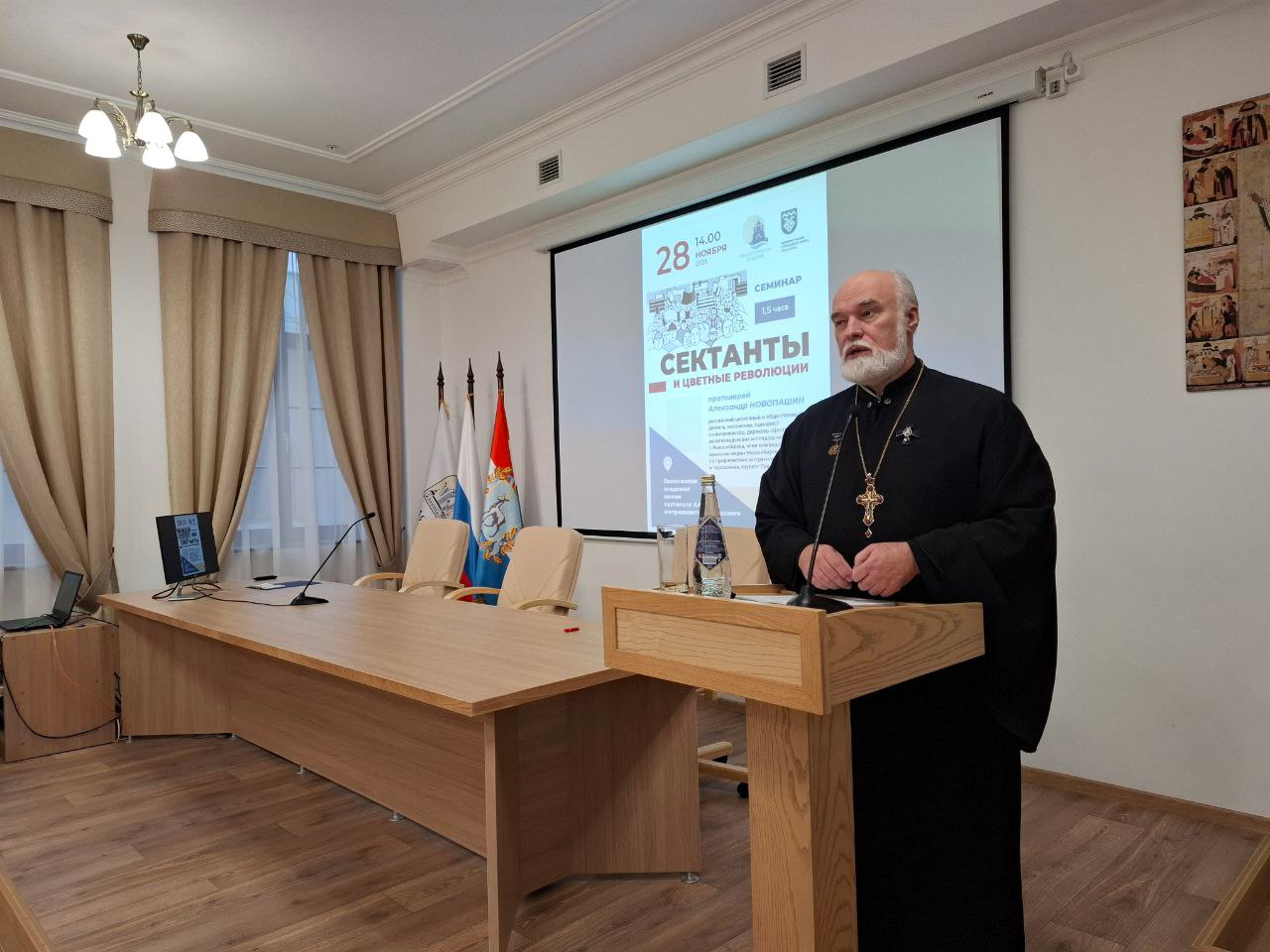 В Поволжской академии образования и искусств прошла лекция руководителя Центра апологетической миссии по СФО, руководителя миссионерского отдела Новосибирской епархии протоиерея Александра Новопашина на тему «Секты и революции: сектанты и цветные революции». Цикл лекций проводится по приглашению Преосвященнейшего Нестора, епископа Тольяттинского и Жигулёвского и по благословению Высокопреосвященнейшего Никодима, митрополита Новосибирского и Бердского.