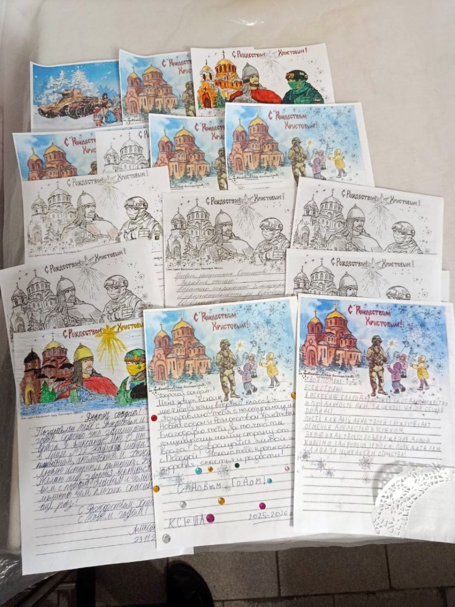 Готовые открытки бережно упакованы вместе с рождественскими подарками и переданы через волонтеров, которые направляются в зону СВО. Каждая такая посылка станет весточкой из дома, написанной детской рукой, – самым искренним и трогательным знаком того, что вся страна, от мала до велика, помнит, ценит и молится о своих героях.