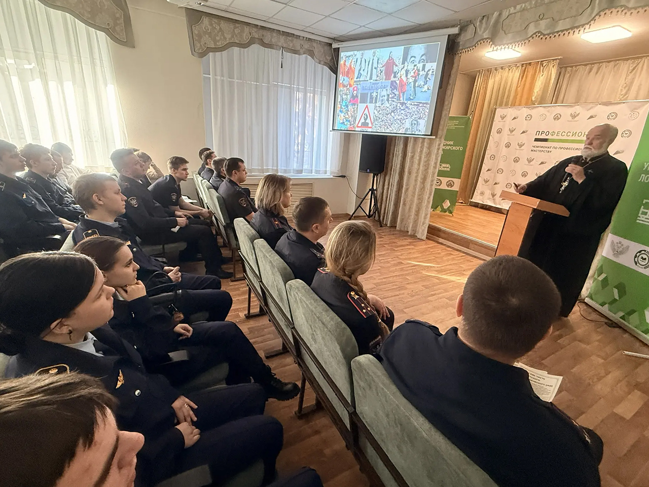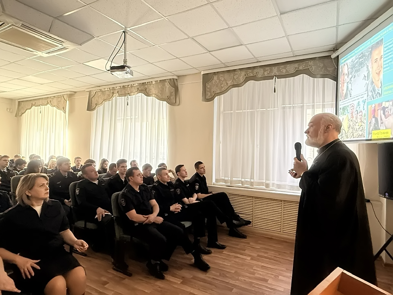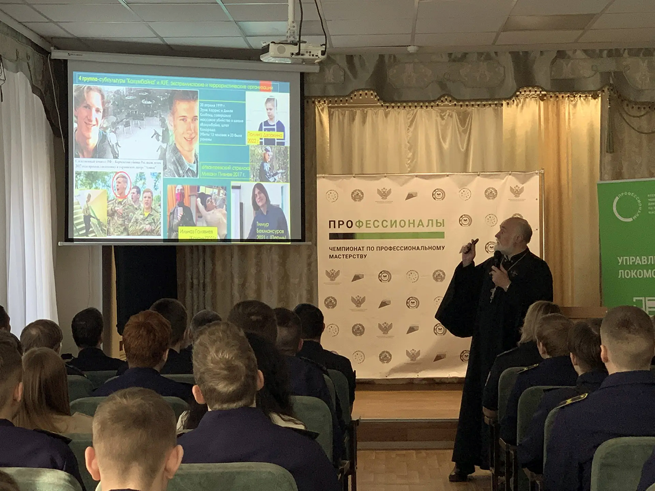 Темой лекции, слушателями которой были учащиеся и преподаватели лицея, а также сотрудники УТ МВД по СФО, были деструктивные образования, как угроза личности, семье, обществу и государству. Отец Александр рассказал, что противопоставить деструктивным образованиям, нередко построенным на экстремистской идеологии, мы можем только патриотизм, как нравственный принцип, социальное чувство и идеологию, основанную на любви к родине, преданности своему народу, гордости за его культуру, достижения, а также готовности защищать интересы страны. Патриотизм — это осознанная привязанность к отечеству, которая включает сохранение и следование традиционным духовно-нравственным ценностям, бережное отношение к традициям, языку и готовность к жертвам ради его процветания. Протоиерей Александр сделал акцент на то, что несмотря на некоторые относительно внешние сходства, экстремизм является фундаментальной противоположностью патриотизма.