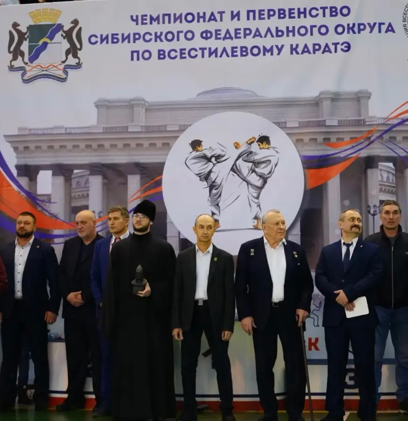 По благословению митрополита Новосибирского и Бердского Никодима заместитель руководителя Спортивного отдела Новосибирской епархии кандидат в мастера спорта по гиревому спорту диакон Антоний Шамилов принял участие в торжественном открытии в Новосибирске Чемпионата и Первенства Сибирского федерального округа по всестилевому карате памяти Владимира Большакова.