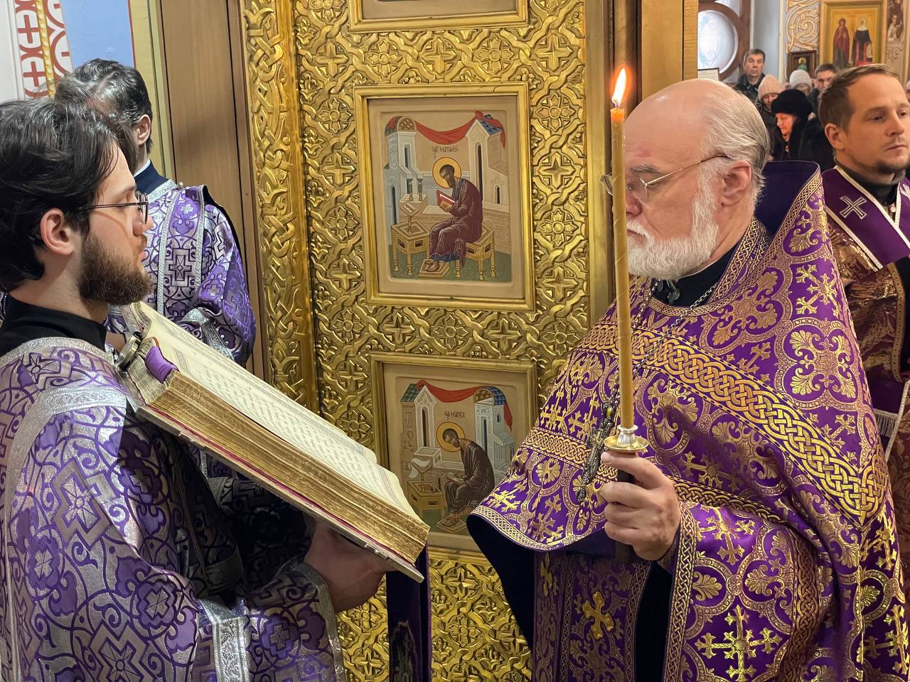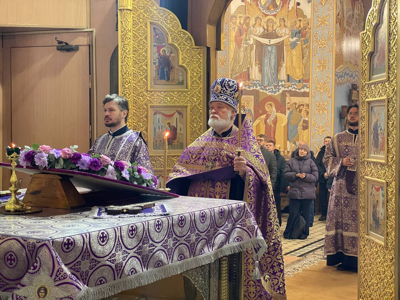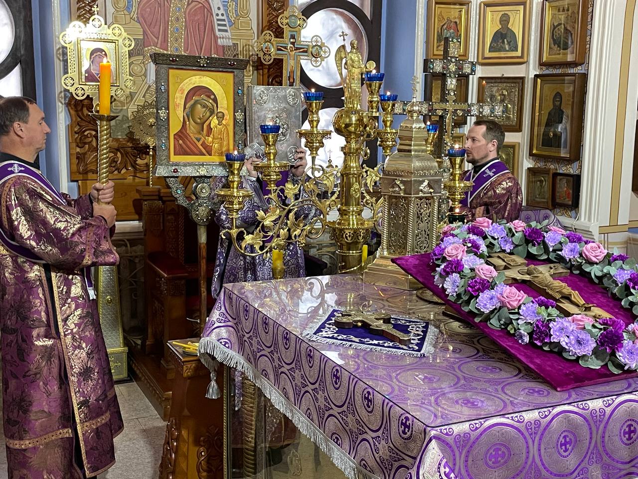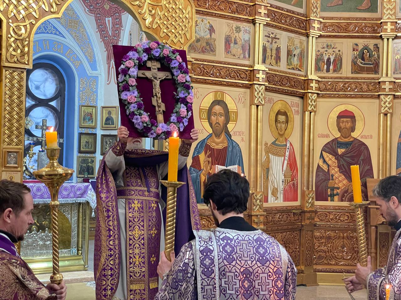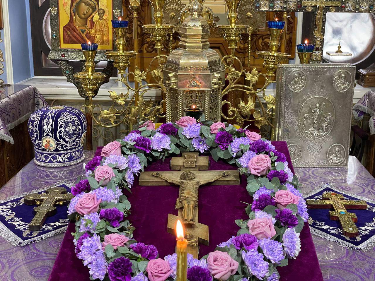 Публикуем краткий фоторепортаж с всенощного бдения с выносом Креста в центр храма в Александро-Невском соборе.