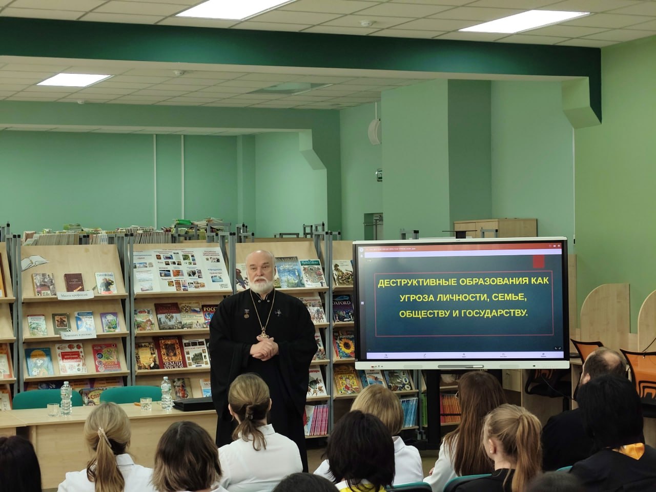 В рамках комплекса мероприятий по профилактике и противодействию распространению деструктивным движениям сектантского и неоязыческого характера 23 апреля Центр апологетической миссии по ЦФО организовал встречу руководителя Центра апологетической миссии по Сибирскому ФО Синодального Миссионерского отдела, вице-президента Российской Ассоциации центров по изучению религий и сект (РАЦИРС), руководителя Миссионерского отдела Новосибирской епархии протоиерея Александра Новопашина с советниками директоров по воспитательной работе муниципальных образовательных учреждений города Курска в школе №58 города Курска.