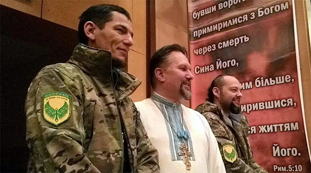 — Дорога в Пески. Двое священников в касках, поверх сутан у которых надеты бронежилеты, идут по дороге под дождём, — описывал в апреле 2015 года журналист латвийского издания Delfi.lt расположение частей "Правого сектора"* под Донецким аэропортом. — Владимир Ризник и Александр Головченко — священники львовской Церкви православных реформаторов, которые по своей инициативе стали военными капелланами.